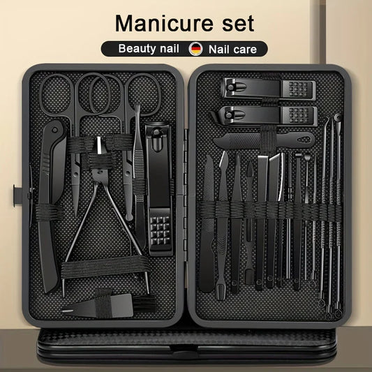 8/12/15/20/24 stücke Schwarz Nagel Clipper Set Maniküre Schneider Haushalt Edelstahl Ohr Löffel Pediküre schere Werkzeug Für Schönheit